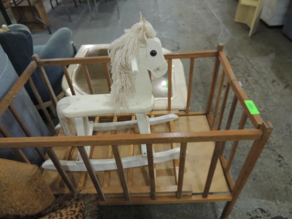 WOODEN ROCKING HORSE CRADDLE CRIB, DECORATIVE WOODEN CRIB, HOME DECOR, DECORATIVE DOLL CRIB AS SHOWN SEE PHOTO FOR MORE DETAILS.