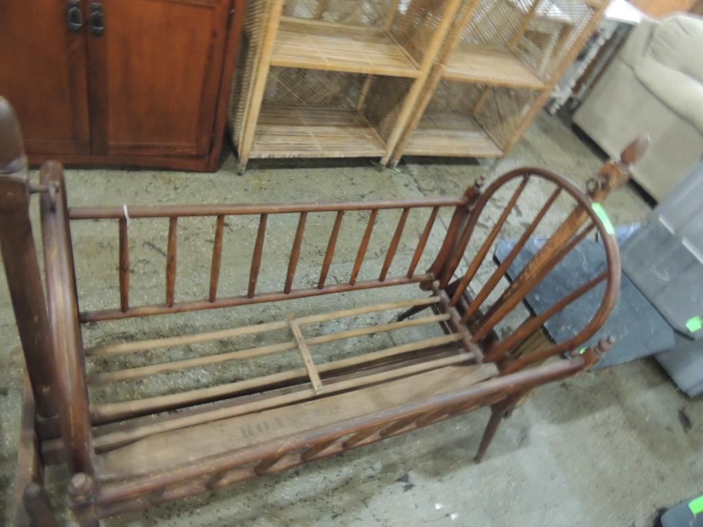 ANTIQUE VINTAGE WOODEN BABY CRADLE ROCKING CRADLE DECORATIVE CRADLE DOLL CRADLE AS SHOWN SEE PHOTO FOR MORE DETAILS.