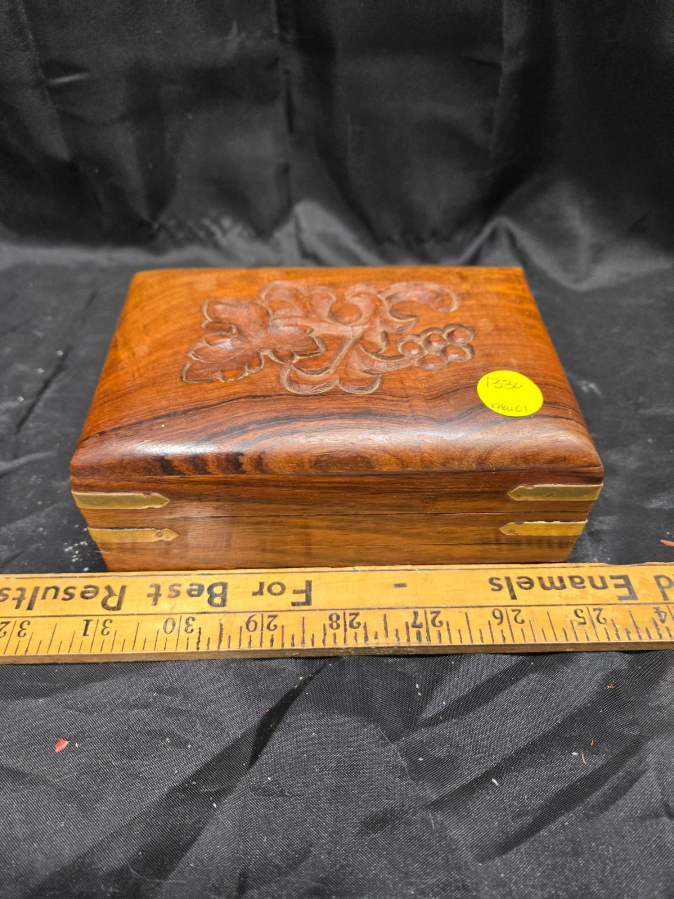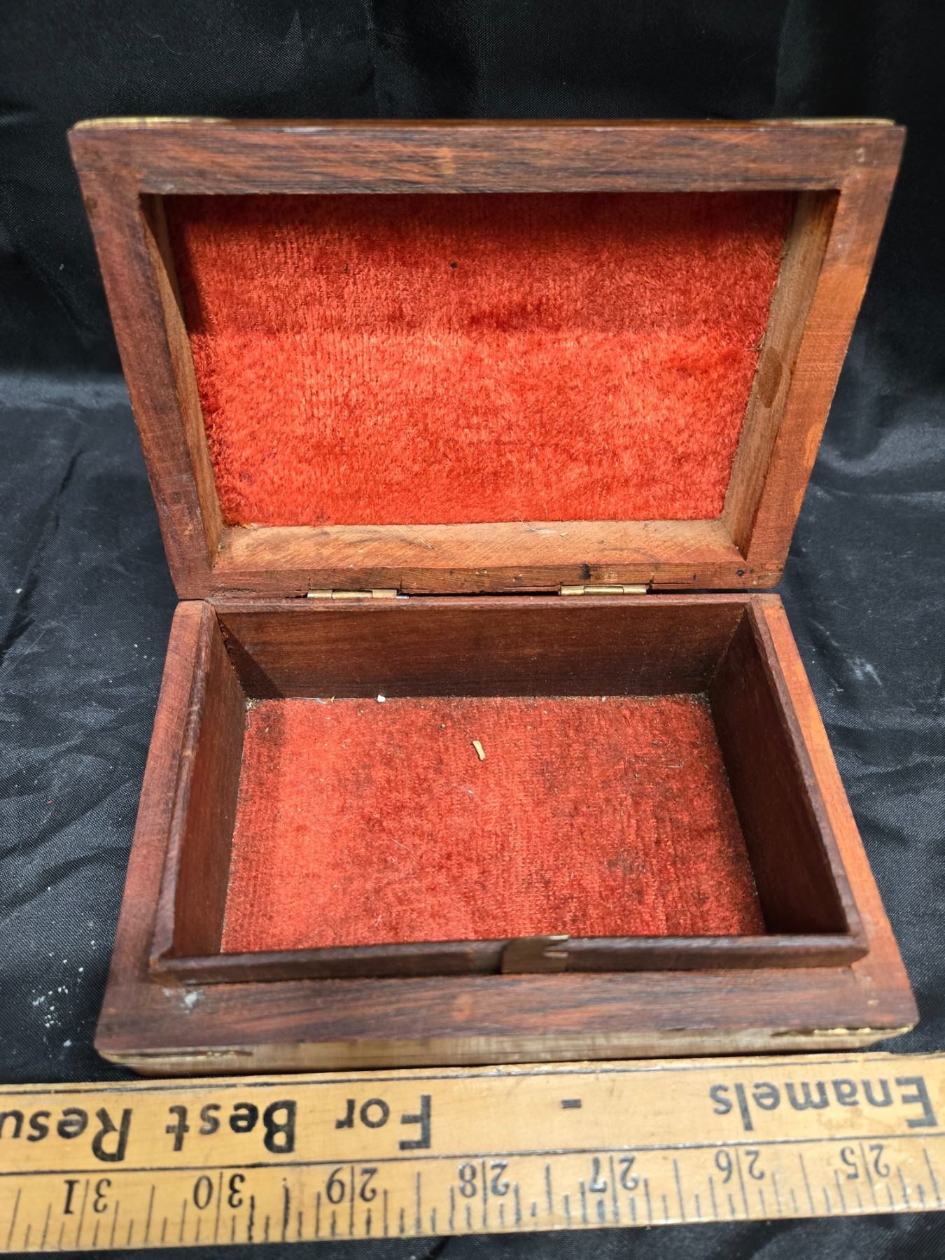 VINTAGE WOODEN BOX, MADE IN INDIA. (6" X 4" X 2 1/4")