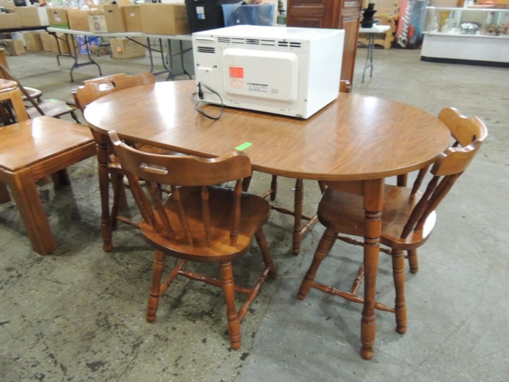 VINTAGE COUNTRY AMERICAN DINING TABLE AND CHAIRS LEAF STRUDY CHAIRS AND TABLE AS SHOWN SEE PHOTO FOR MORE DETAILS