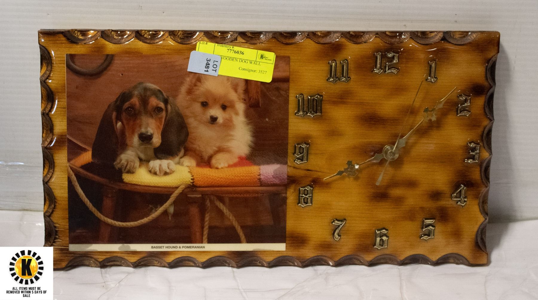 VINTAGE WOODEN DOG WALL CLOCK