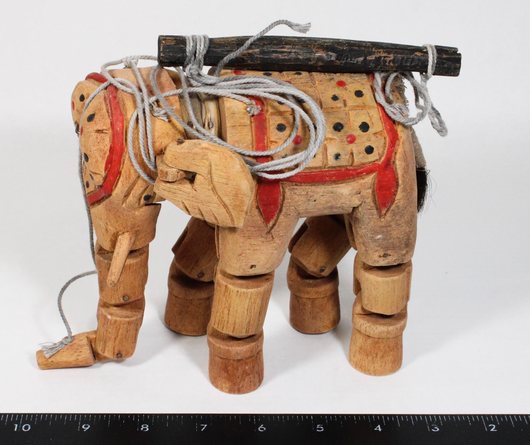 VINTAGE WOODEN ELEPHANT MARIONETTE .H6" L6"
