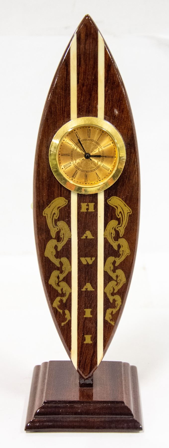 VINTAGE WOODEN HAWAII TABLE CLOCK, WORKS