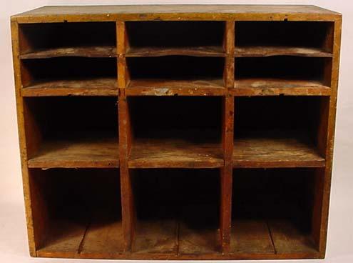 VINTAGE WOODEN MAIL SLOT DIVIDER - SMALLER SIZE - Approx. 21" wide, 8.5" deep, 17" tall