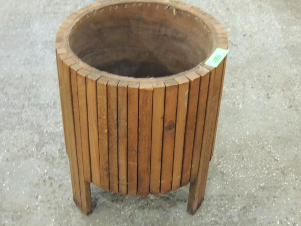 VINTAGE WOODEN PLANK PLANTER ROUND PLANTER INDOOR OUTDOOR PLANTER AS SHOWN SEE PHOTO FOR MORE DETAILS.L