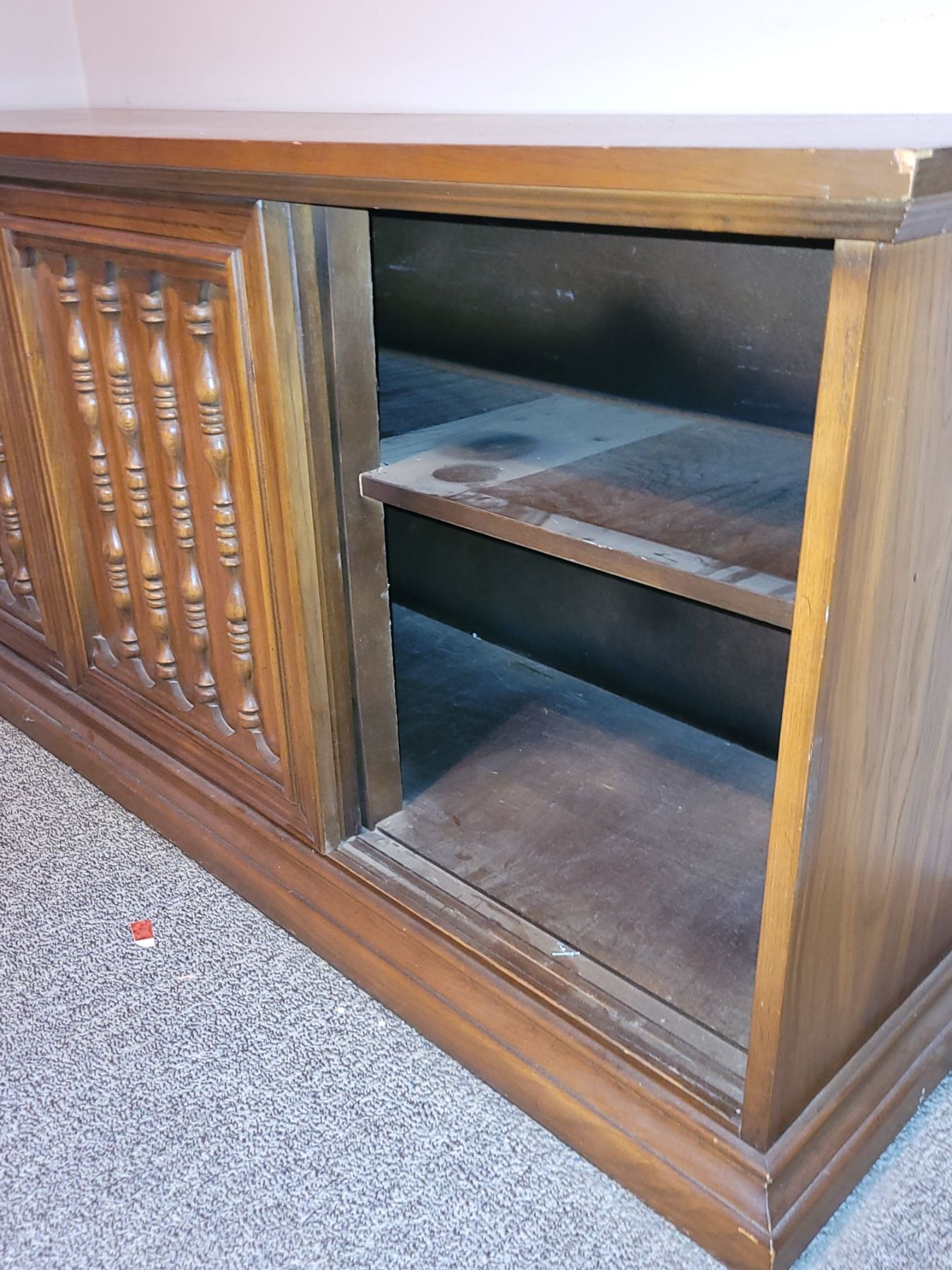 ALL 3 DOOR SLIDE LEFT OT RIGHT. MEASURES: 60" X 29" X 18" SEE PICTURES