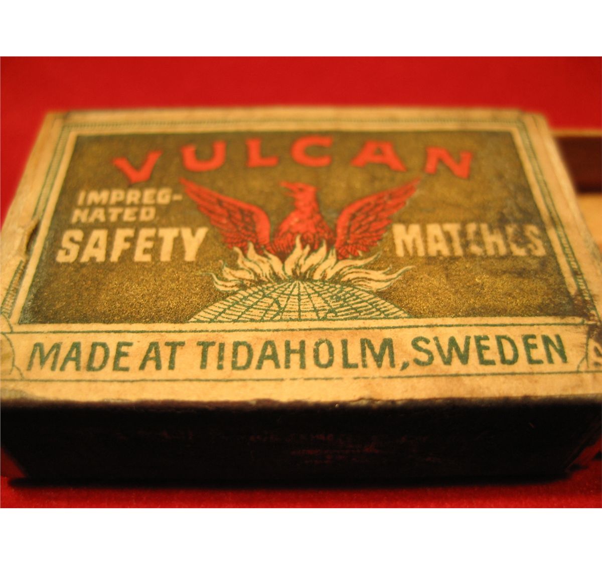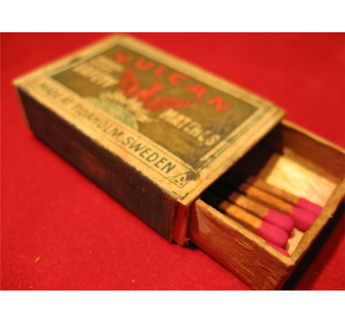 VINTAGE WOODEN SAFETY MATCHES BOX BRAND VULCAN SWEDEN,
