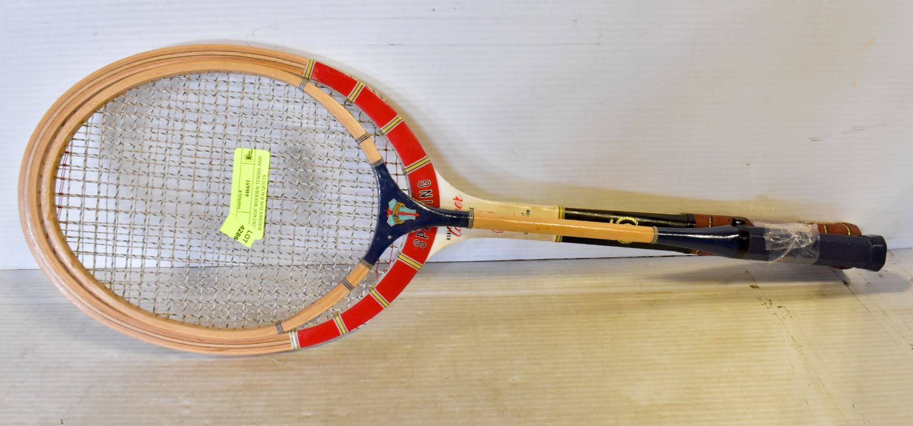 VINTAGE WOODEN TENNIS AND BADMINTON RACQUETS