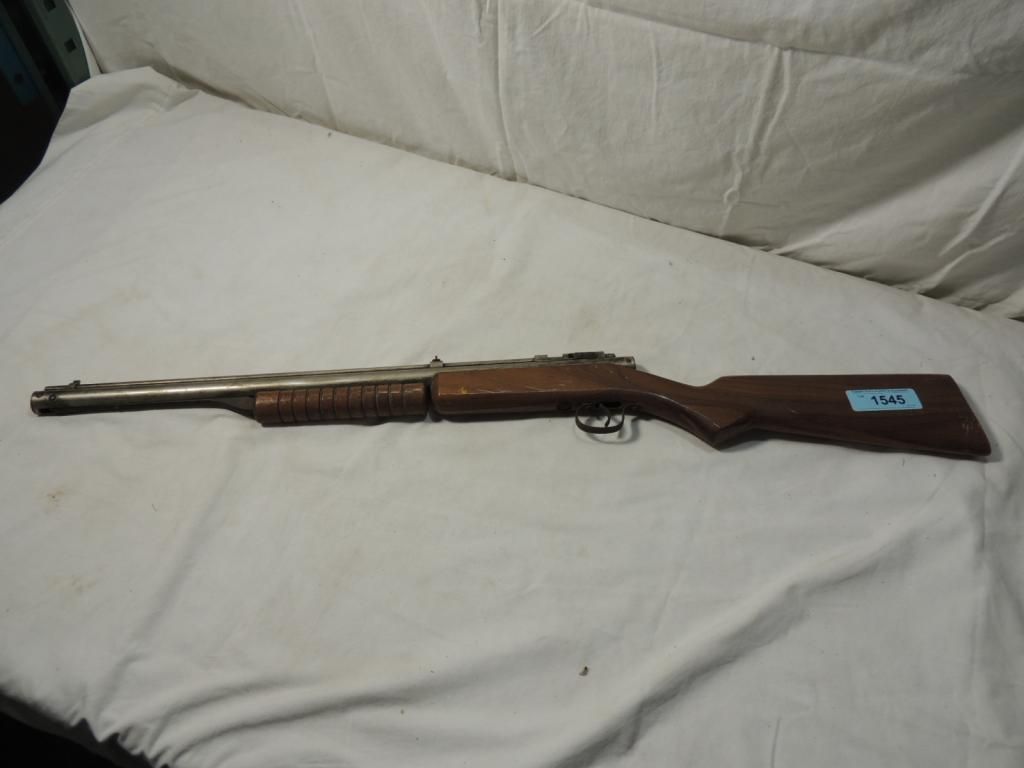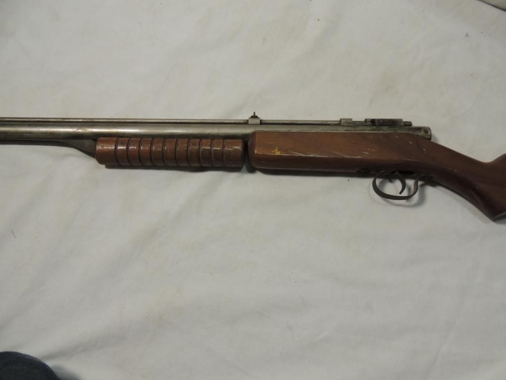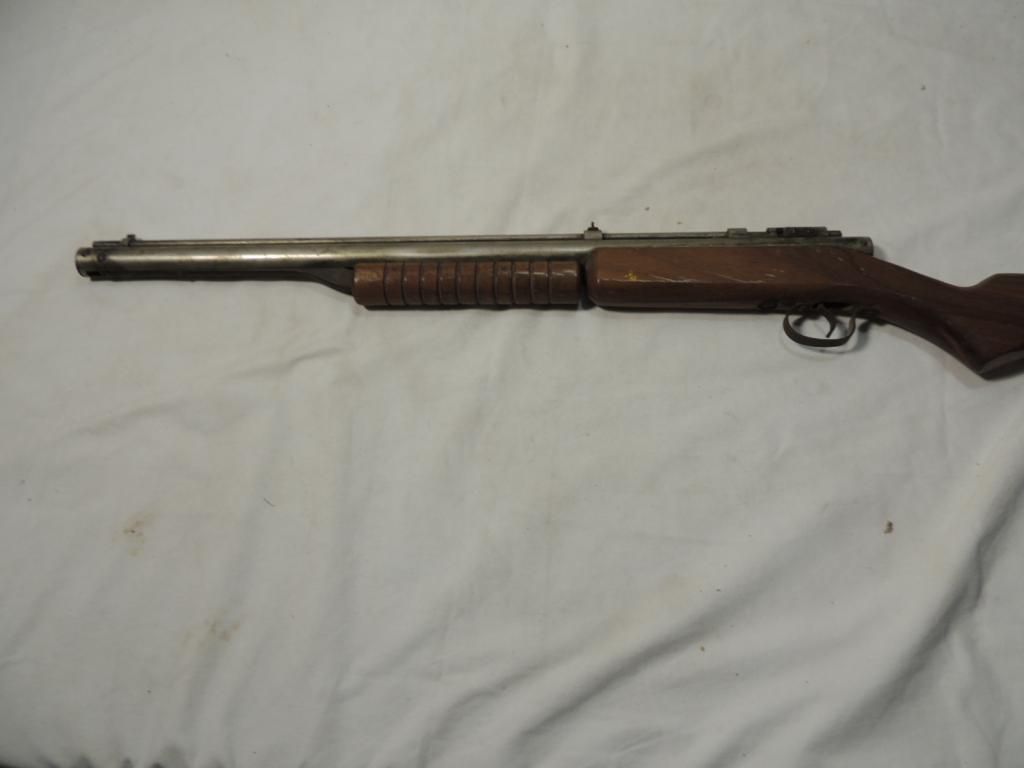 VINTAGE WOODEN TOY SHOT GUN. AS SHOWN SEE PHOTO FOR MORE DETAILS.