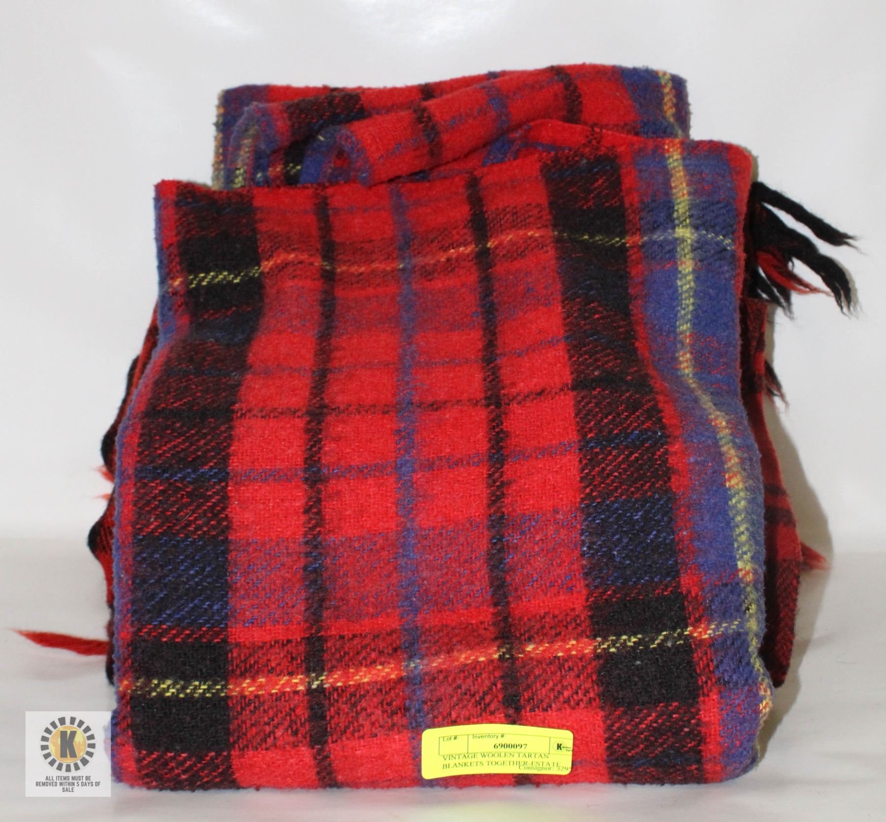 VINTAGE WOOLEN TARTAN BLANKETS TOGETHER-ESTATE