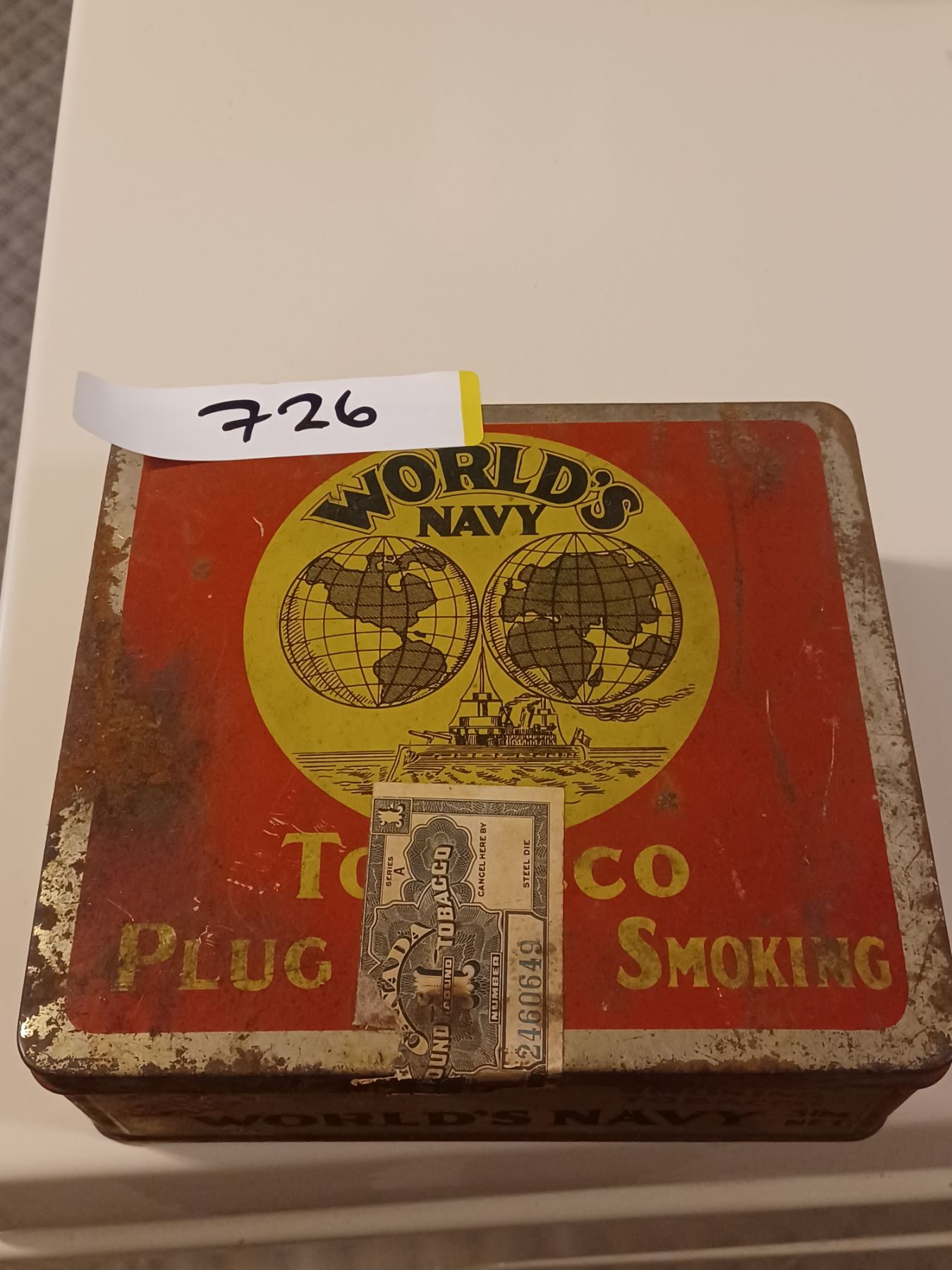 VINTAGE WORLDS NAVY TABACO TIN 7"X6.6"X 2.5"