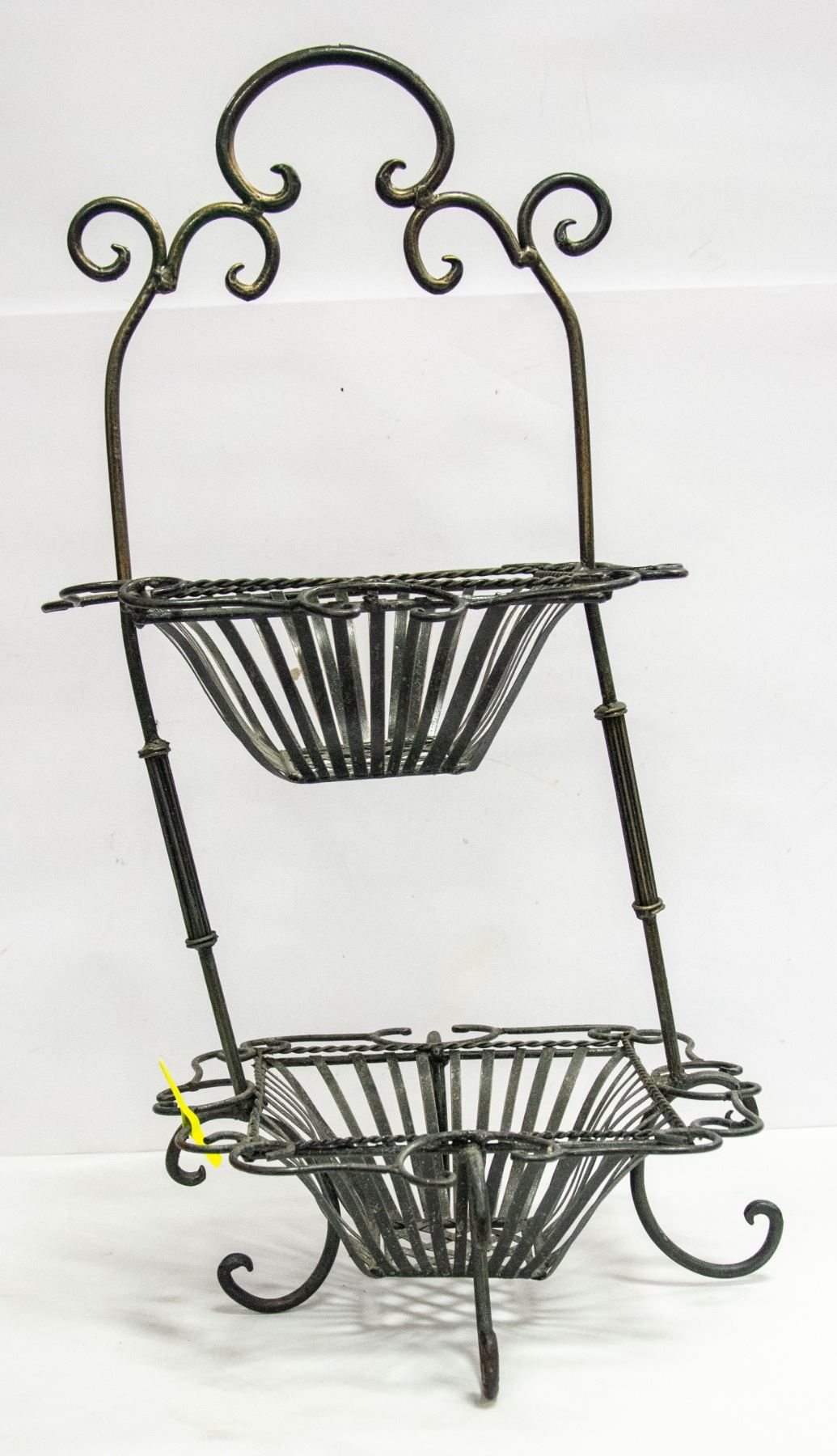 VINTAGE WROUGHT IRON 2 LEVEL STAND
