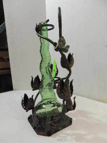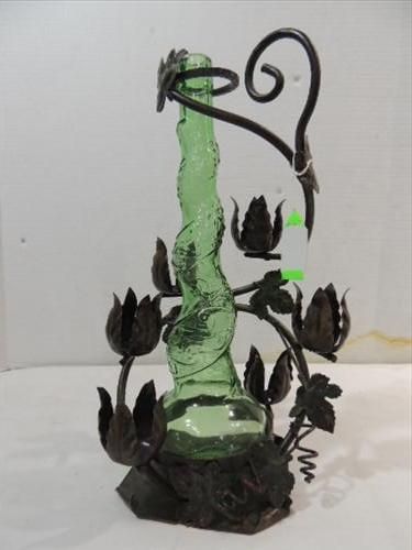 VINTAGE WROUGHT IRON & GLASS IVY VINE STYLIZED CANDLE HOLDER. AS SHOWN. VIEW PICTURE FOR DETAIL.