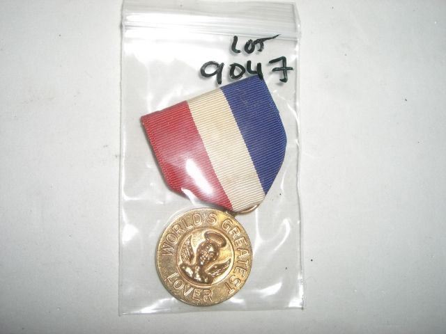 VINTAGE WWII ERA MEDAL *WORLDS GREATEST LOVER* MEDAL!! MEDAL CAME OUT OF SAFE!! ***Coin, Currency & All Items Listed in this auction - Grades, Conditions and Values are not Safe Deposit Coins LLC Responsibilty. Grades, Condition and Values are determined by Consigner(s) & Buyers ONLY