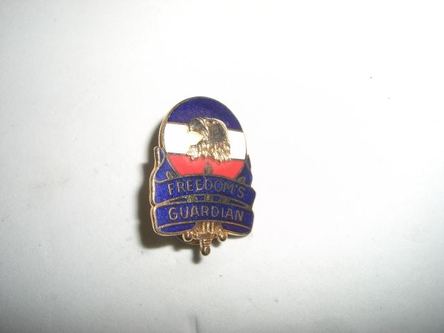 VINTAGE WWII EXTREMELY RARE PIN BACK MTEAL BADGE *FREEDOM GUARDIAN* VALUE $64.00+!! PIN BACK CAME OUT OF SAFE BOX!! ***Coin, Currency & All Items Listed in this auction - Grades, Conditions and Values are not Safe Deposit Coins LLC Responsibilty. Grades, Condition and Values are determined by Consigner(s) & Buyers