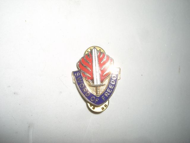 VINTAGE WWII RARE PIN BACK MTEAL BADGE *SWORD OF FREEDOM* VALUE $28.00+!! PIN BACK CAME OUT OF SAFE BOX!! ***Coin, Currency & All Items Listed in this auction - Grades, Conditions and Values are not Safe Deposit Coins LLC Responsibilty. Grades, Condition and Values are determined by Consigner(s) & Buyers