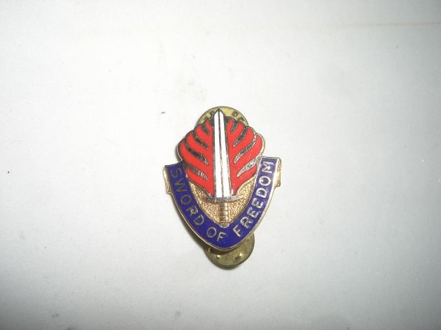 VINTAGE WWII RARE PIN BACK MTEAL BADGE *SWORD OF FREEDOM* VALUE $28.00+!! PIN BACK CAME OUT OF SAFE BOX!! ***Coin, Currency & All Items Listed in this auction - Grades, Conditions and Values are not Safe Deposit Coins LLC Responsibilty. Grades, Condition and Values are determined by Consigner(s) & Buyers