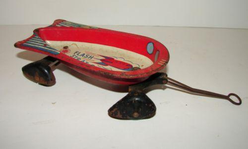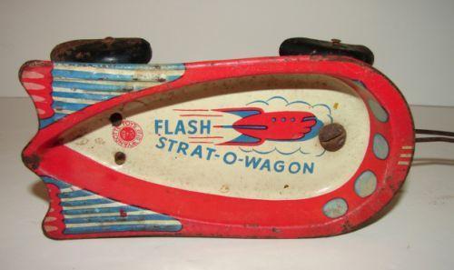 VINTAGE WYANDOTTE TOY WAGON. Marked on inside of wagon “Flash/Strat-O-Wagon”. Shows minor loss to paint. 9” L