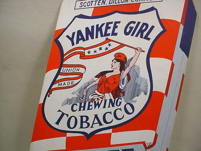 VINTAGE YANKEE GIRL CHEWING TOBACCO DIE CUT ADVERTISING COUNTER DISPLAY SIGN - Approx. 11.5" tall