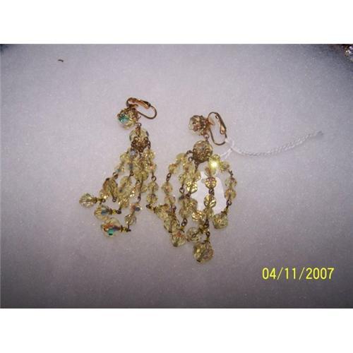 <tr><td>Title:VINTAGE YELLOW CRYSTAL CHANDLER CLIP ON</td></tr>