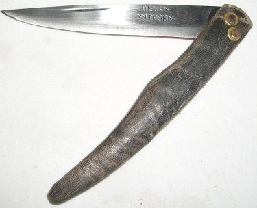 VINTAGE Yatagan Horn Handle knife is native to the Basque Country region in Northern France Stamped *DESAN YATAGAN*. This knife design has been the favorite choice of the Basque for many years.!! KNIFE CAME OUT OF SAFE!! ***Coin, Currency & All Items Listed in this auction - Grades, Conditions and Values are not Safe Deposit Coins LLC Responsibilty. Grades, Condition and Values are determined by Consigner(s) & Buyers