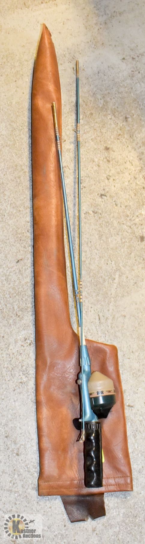 VINTAGE ZEBCO FISHING REEL, ROD & CASE