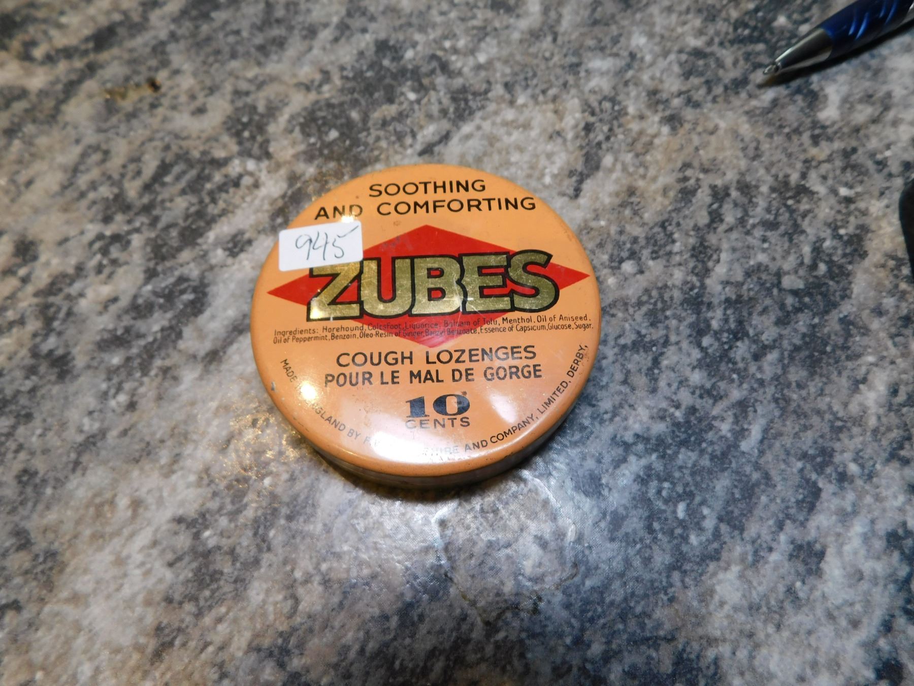 VINTAGE ZUBES COUGH LOZENGES TIN