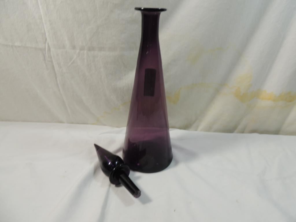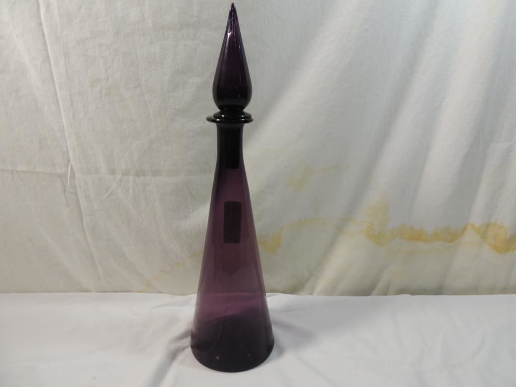 PURPLE GLASSWARE GENIE BOTTLE DECORATIVE GLASSWARE VASE AS SHOWN SEE PHOTO FOR MORE DETAILS.