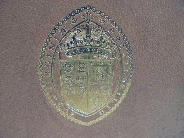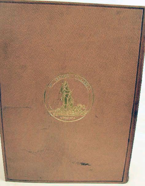 By Alexander W. Weddell, The William Byrd Press, Richmond, Virginia, 1930, copy #477/1000. 556pp. In the original slip case, the covers of beige pigskin with gilt stampings and ornamentation, having a map, 197 portraits and marble end papers. All aspects of the book - the making of the paper, the use of local pigs for the cover`s leather, the compilation, binding and printing of the volumes - were done in Virginia. Together with "Portraits in the Collection of the Virginia Historical Society: A Catalogue", compiled by Virginius Cornick Hall, Jr., University Press, Charlottesville, Virginia, 1981. 2 pieces.