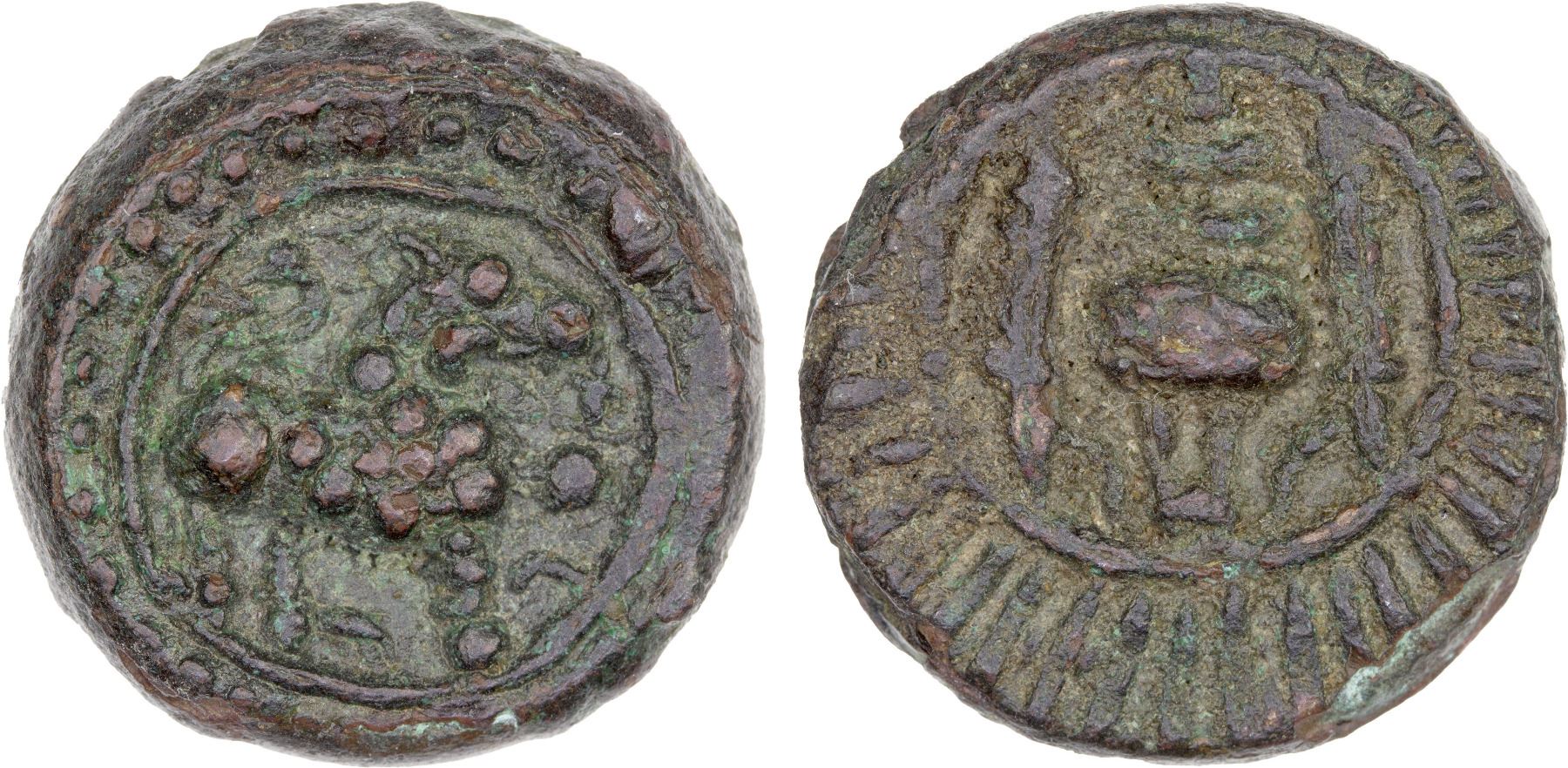 VISHNUKUNDIN: Anonymous, ca. 450-650, AE unit (9.48g), lion facing right with srivatsa infront // conch shell between two tridents, bold strike, VF to XF.