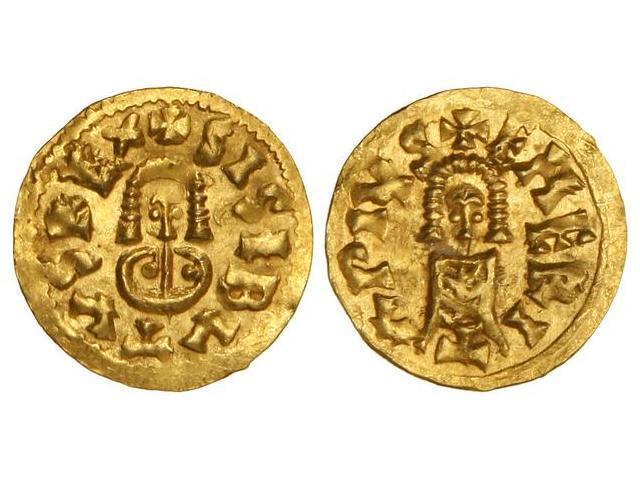 VISIGOTHIC COINS - Triente. SISEBUTO (612-621). EMERITA (Lusitania). Anv.: SISEBVTVS REX. Rev.: EMERI/T/PIVS. 1,49 grs. AU. Miles-192a; VCC-258.8. EBC+.