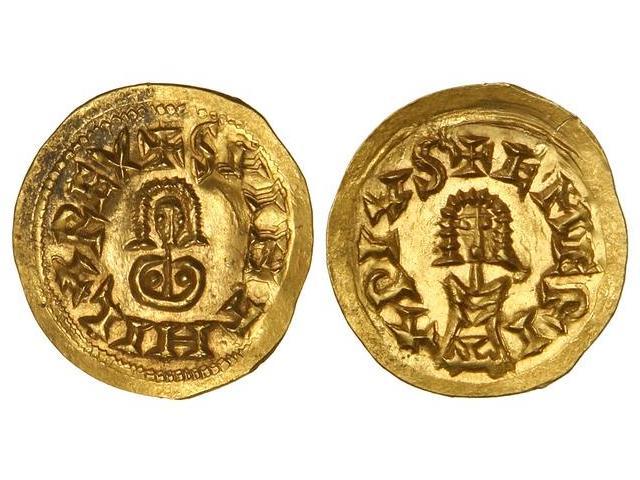 VISIGOTHIC COINS - Triente. SUINTHILA (621-631). EMERITA (Lusitania). Anv.: SVINTHILREX. Rev.: EMERI/T/PIVS. 1,53 grs. AU. (Leve rayita en reverso). Miles-235a; VCC-327.1. EBC+.
