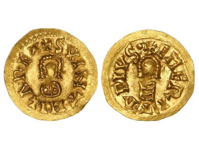 VISIGOTHIC COINS - Triente. SUINTHILA (621-631). EMERITA (Lusitania). Anv.: SVINTHILREX. Rev.: EMERI/T/PIVS. 1,49 grs. AU. Miles-235c; VCC-327.4. EBC+.