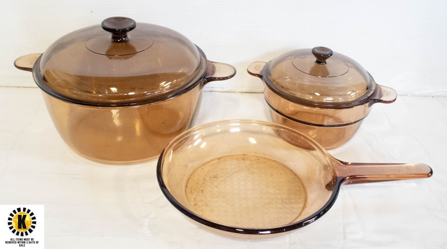 VISION CORNING GLASS POTS/PANS/LIDS- 5 PIECE LOT