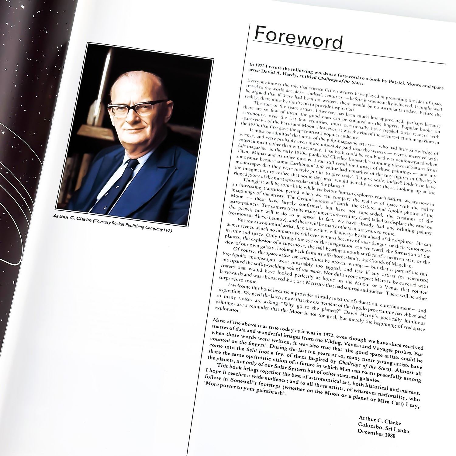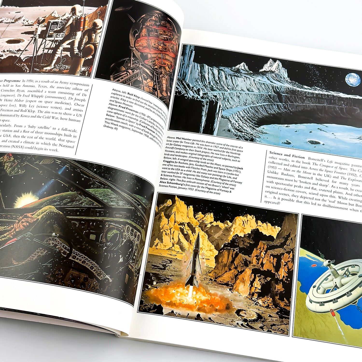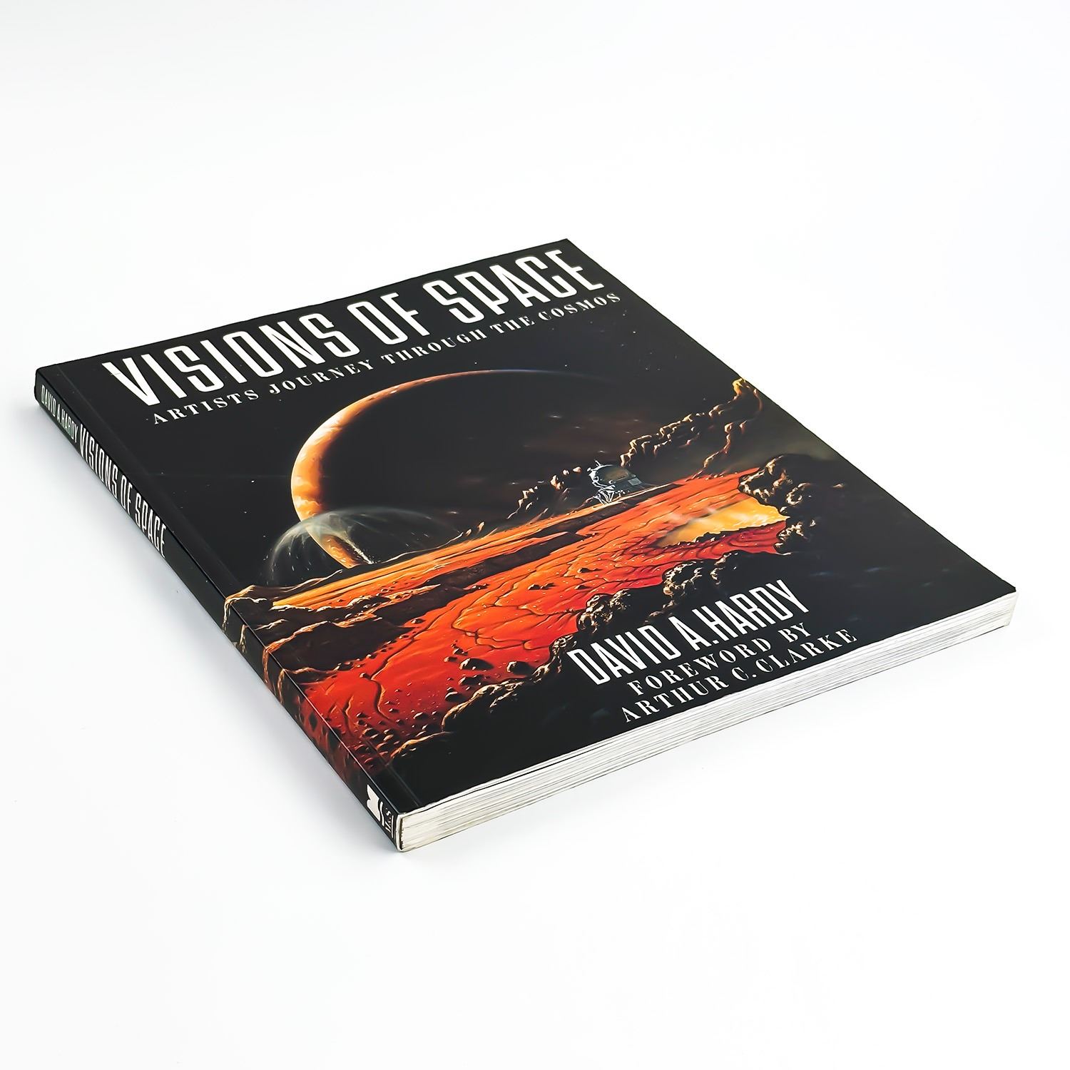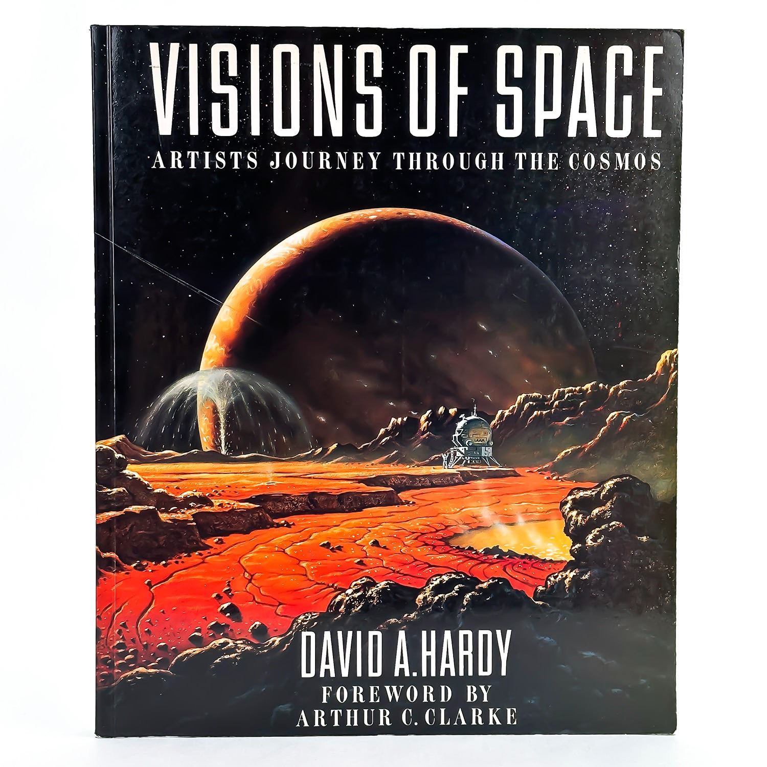 #8310 - VISIONS OF SPACE BOOK BY DAVID A. HARDY - FORWARD BY ARTHUR C. CLARKE. ILLUSTRATIONS, PAINTINGS & ART BY EARTH’S FINEST SPACE ARTISTS. PAPERBACK BOOK - FIRST PUBLISHED IN CANADA 1990 - 176 PAGES. MEASURES: 10” X 12”