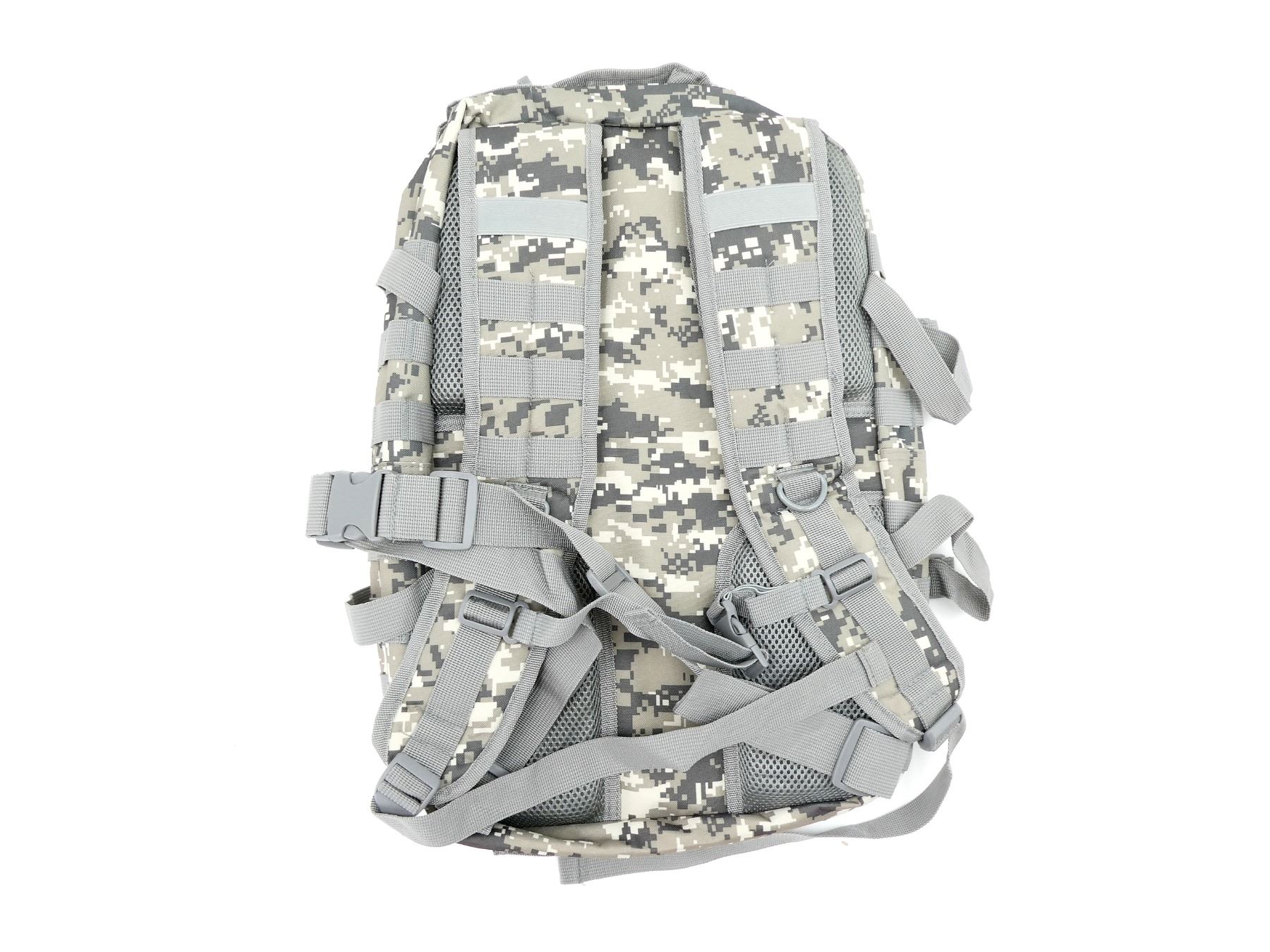 (1) TACTICAL STYLE BACKPACK, GREY DIGITAL CAMO, WITH VARIOUS WORKING ZIP POCKETS & ATTACHMENT POINTS, ADJUSTABLE SHOULDER STRAPS, APPEARS NOS, WITH ORIGINAL TAGS, APPROX. 20" X 15" X 8". SEE PHOTOS.