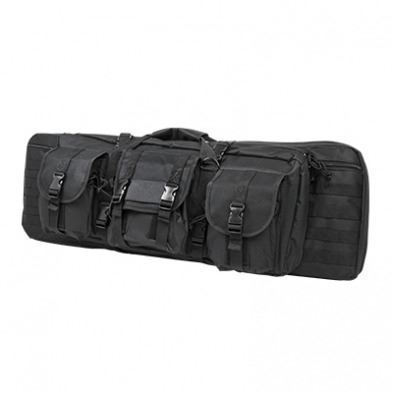 36” (42”, 46”, 55”) Double Carbine Case is constructed of heavy duty PVC material and the main compartment is fully padded on all side with thick ½” closed cell foam padding. The main compartment has Heavy Duty zippers with metal zipper pulls that can be locked with a small pad lock (lock not included).