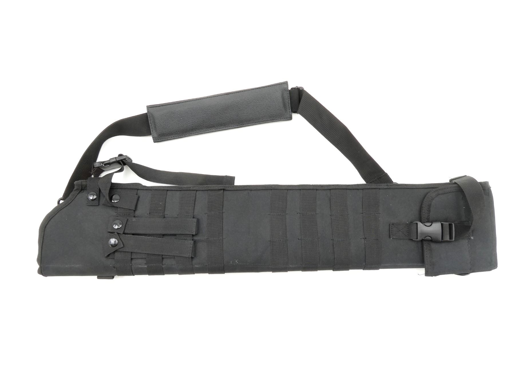 LOT INCLUDES; (1) SOFT PADDED VISM NC-STAR TACTICAL SHOTGUN SCABBARD, SHOULDER STARP, (2) STRAPS WITH BUCKELS, MOLE LOOPS, (4) DETACHABLE STRAPS WITH BUTTONS, (4) D LOOPS, APPROX. OVERALL LENGTH 35", APPEARS NEW OLD STOCK, SEE PHOTOS,