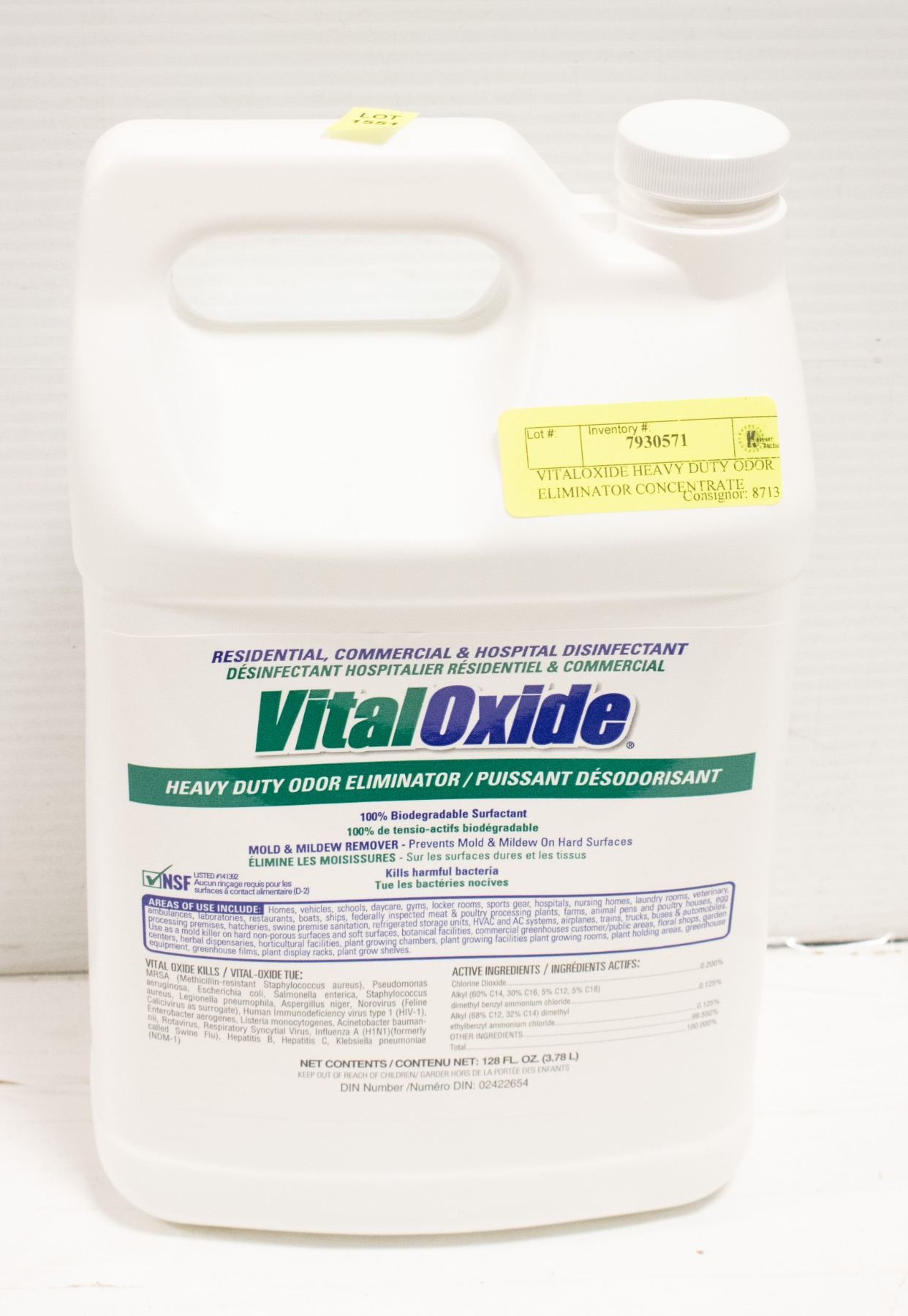 NON CORROSIVE, 100% BIODEGRADABLE, MOLD AND MILDEW REMOVER. FOR RESIDENTIAL, COMMERCIAL AND HOSPITAL DISINFECTING USES. 3.78L BOTTLE **SHIPPING NOT AVAILABLE** **ALL ITEMS MUST BE REMOVED BY 5PM SATURDAY, FEBRUARY 4TH 2023.** ALL REMAINING ITEMS WILL BE SUBJECT TO A $6.00 PER DAY STORAGE CHARGE. ANY ITEMS REMAINING AFTER MONDAY, FEBRUARY 20TH, 2023 WILL BE CONSIDERED FORFEITED. NO REFUNDS WILL BE ISSUED FOR FORFEITED ITEMS. TO SCHEDULE A PICK UP APPOINTMENT CLICK HERE
