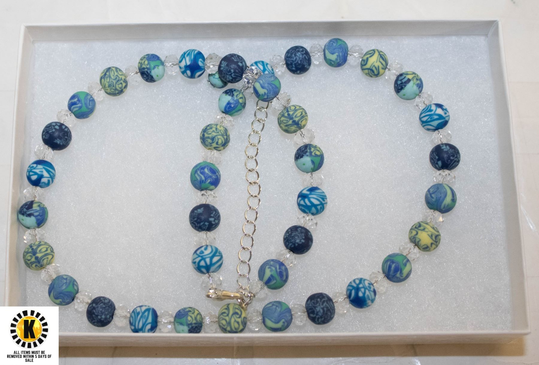 VIVA BLUE CLAY BEAD NECKLACE 19" EXTENDS TO 23"