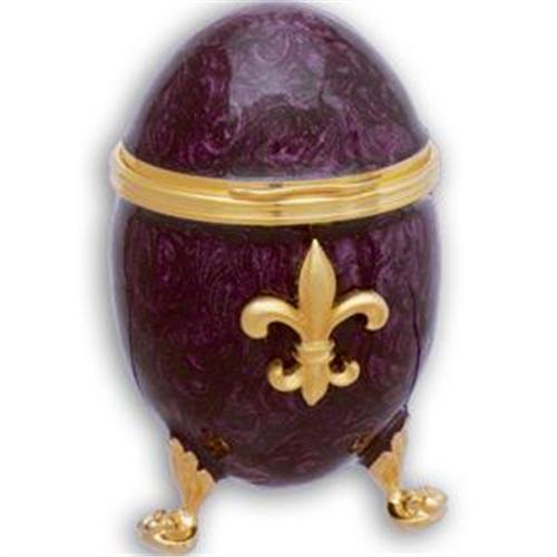 This exquisite Egg Jewelry Box is by Vivian Alexander. It was made of .999 Fine Silver and it is guilloche turned with translucent Amethyst colored Enamel that covers the entire egg. The Vivian Alexander Hallmark is embedded in the enamelling. This Egg Jewelry Box is 3 inches tall and it contains a removeable black velvet ring cushion. Vivian Alexanders' original boxes were inspired by the Russian Jewelry Peter Faberge. Many of the design originals were inspired by the pieces in the Forbes museum. Each of her 'Eggs' are a collectors item.