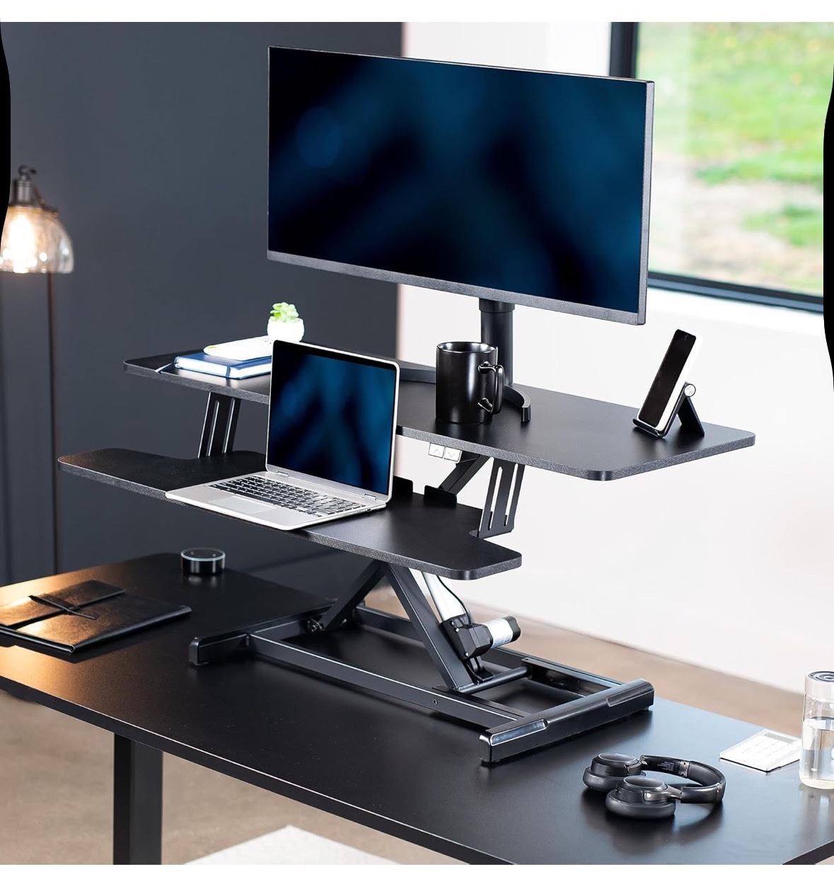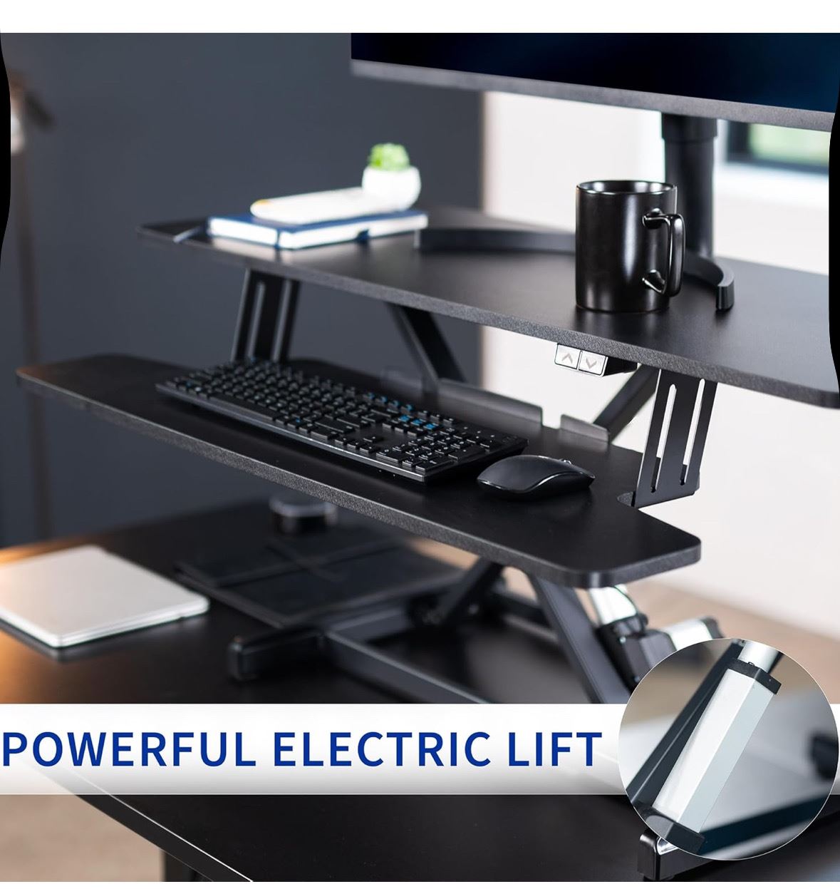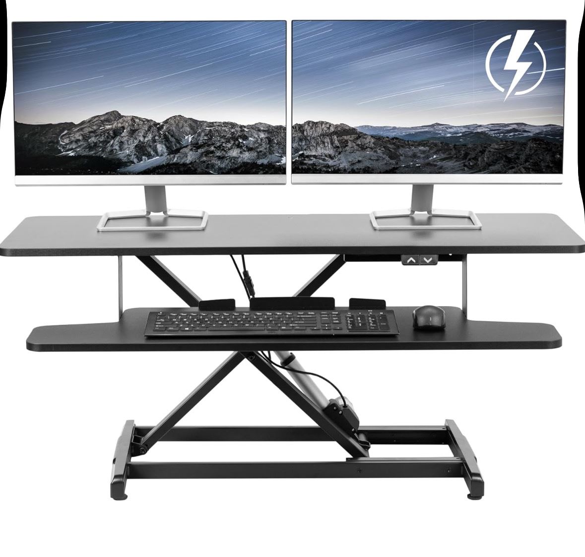 VIVO 42 inch Electric Motor Desk Converter, Height Adjustable Riser, Sit to Stand Dual Monitor and Laptop Workstation with Wide Keyboard Tray, Black, DESK-VE42B retail $299.95 (refurbished in box)