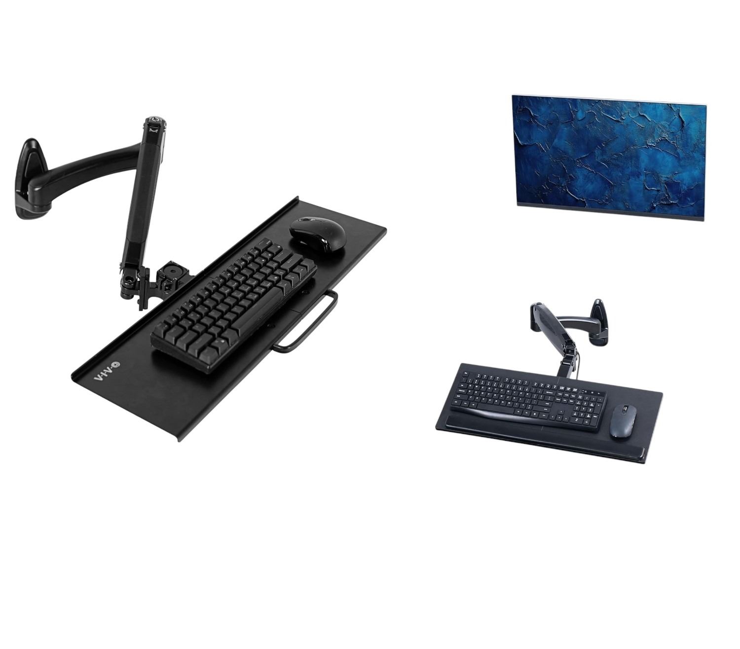 VIVO black pneumatic wall mounted keyboard tray MOUNT-KB35A & 2pc KB35B