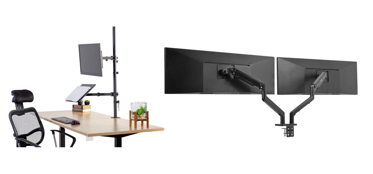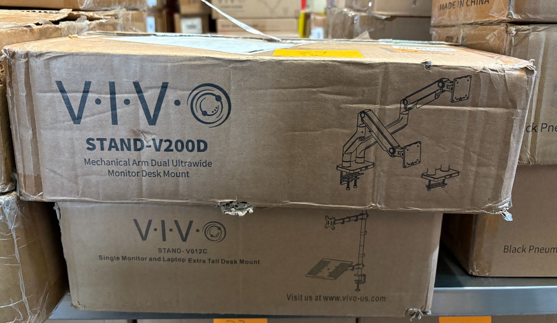 VIVO mechanical arm dual ultrawide monitor desk mount & single monitor and laptop extra tall desk mount (refurbished in boxes)