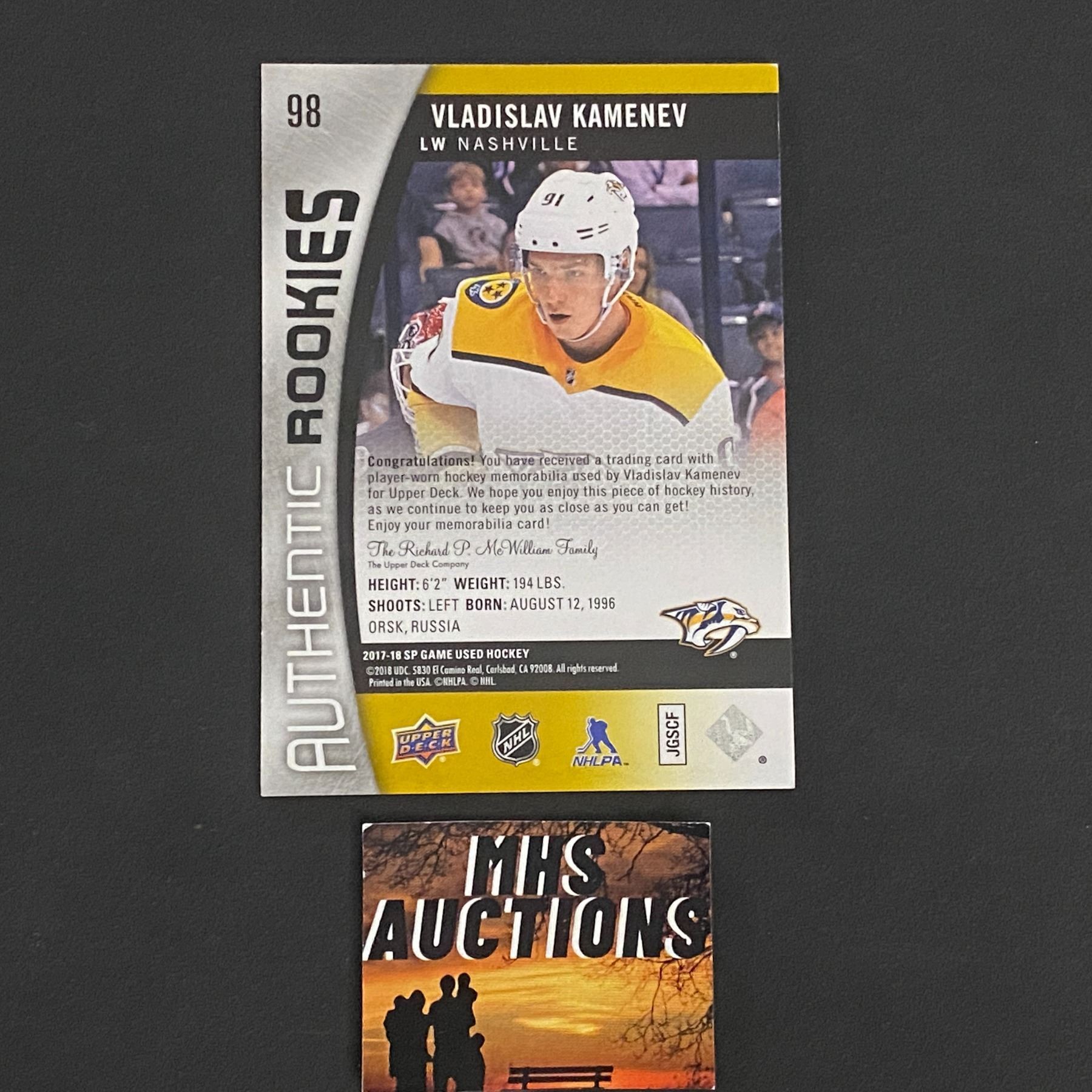 VLADISLAV KAMENEV 2017-18 SP GAME USED JERSEY CARD