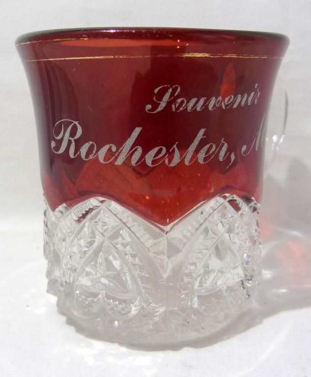 VNTG Ruby Red Flash/Crystal "Rochester, Minn." Cup