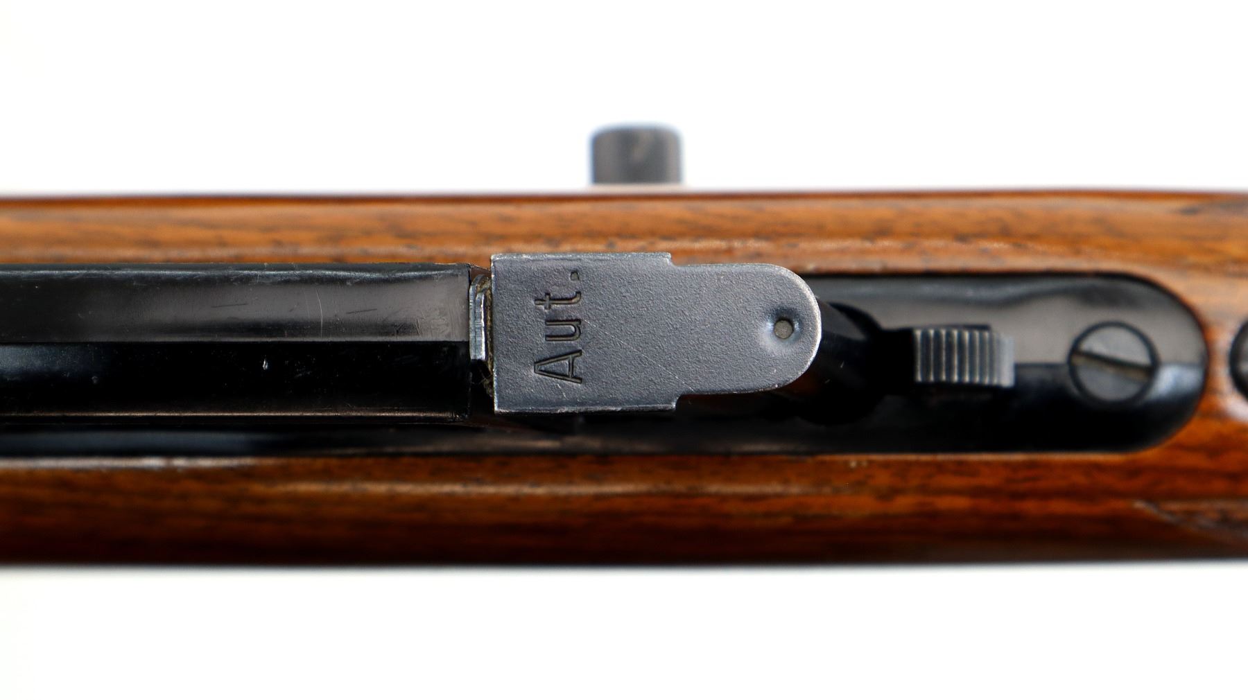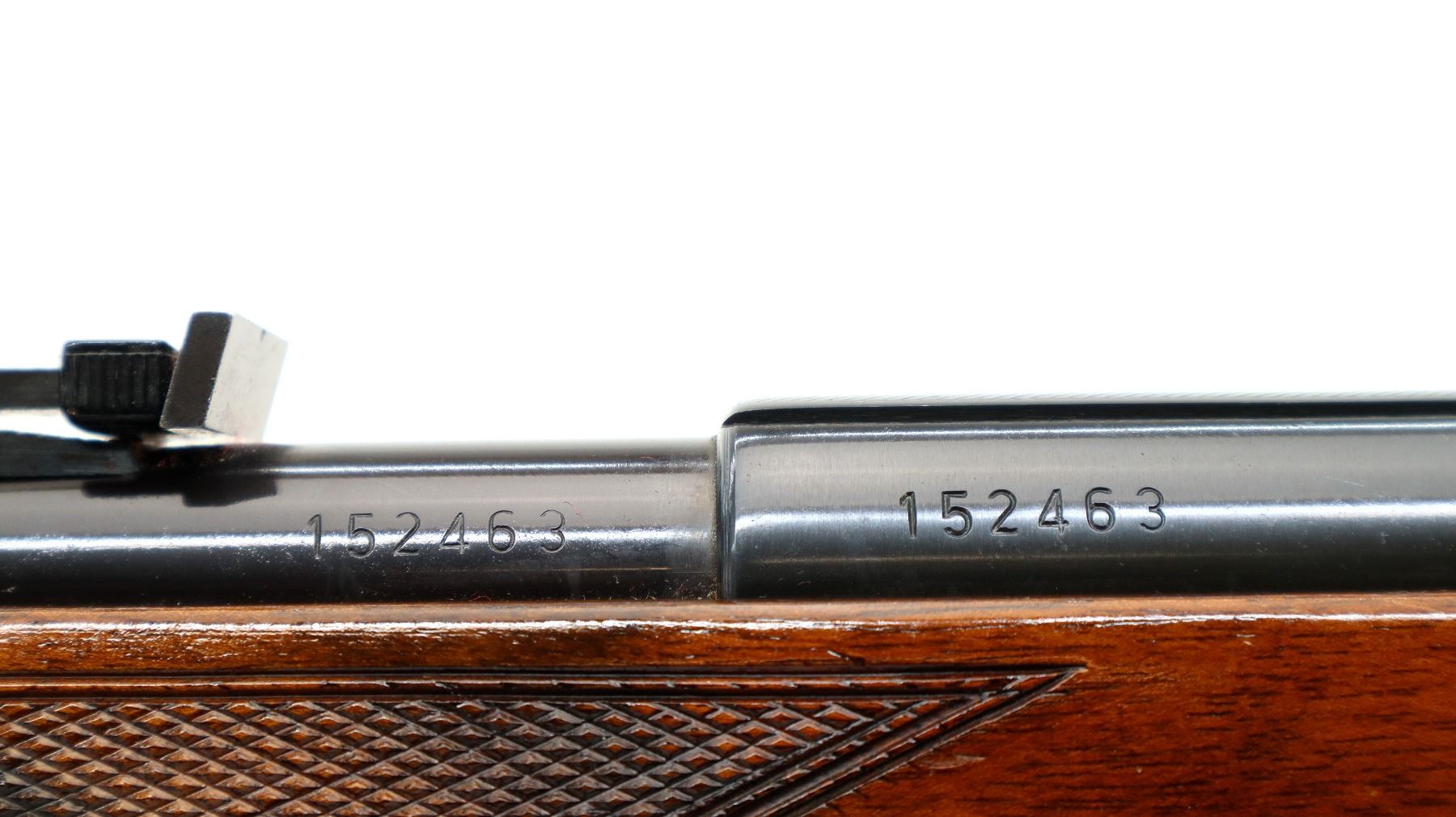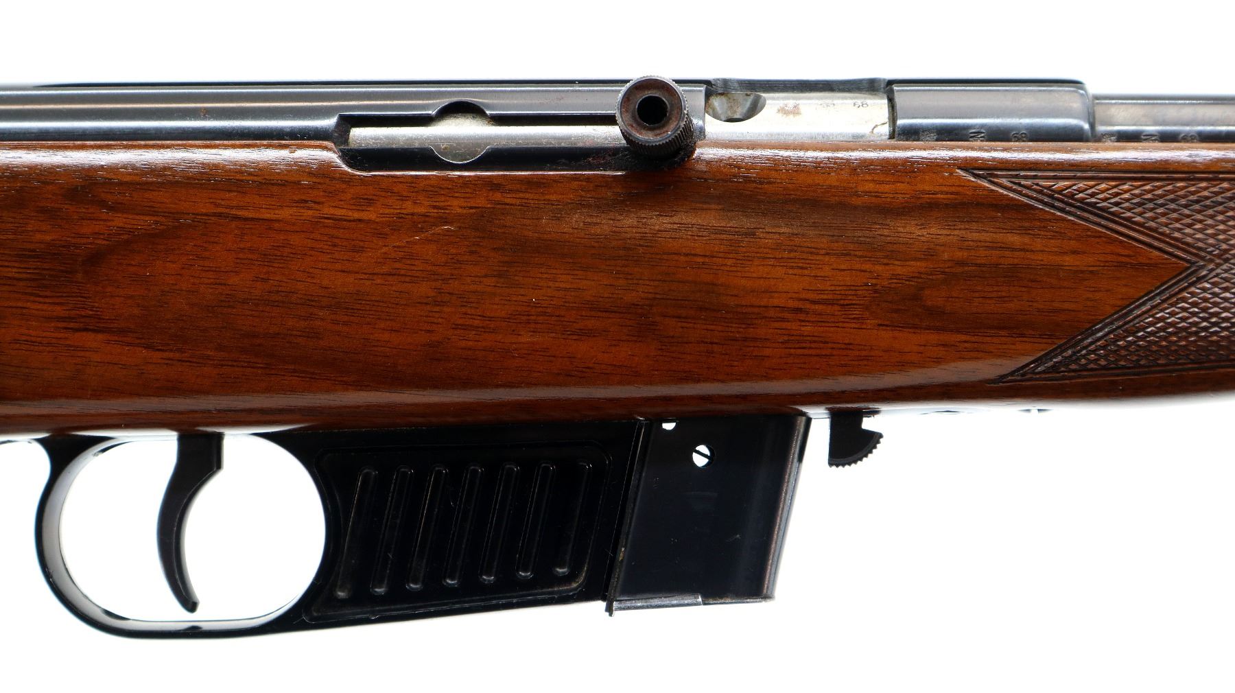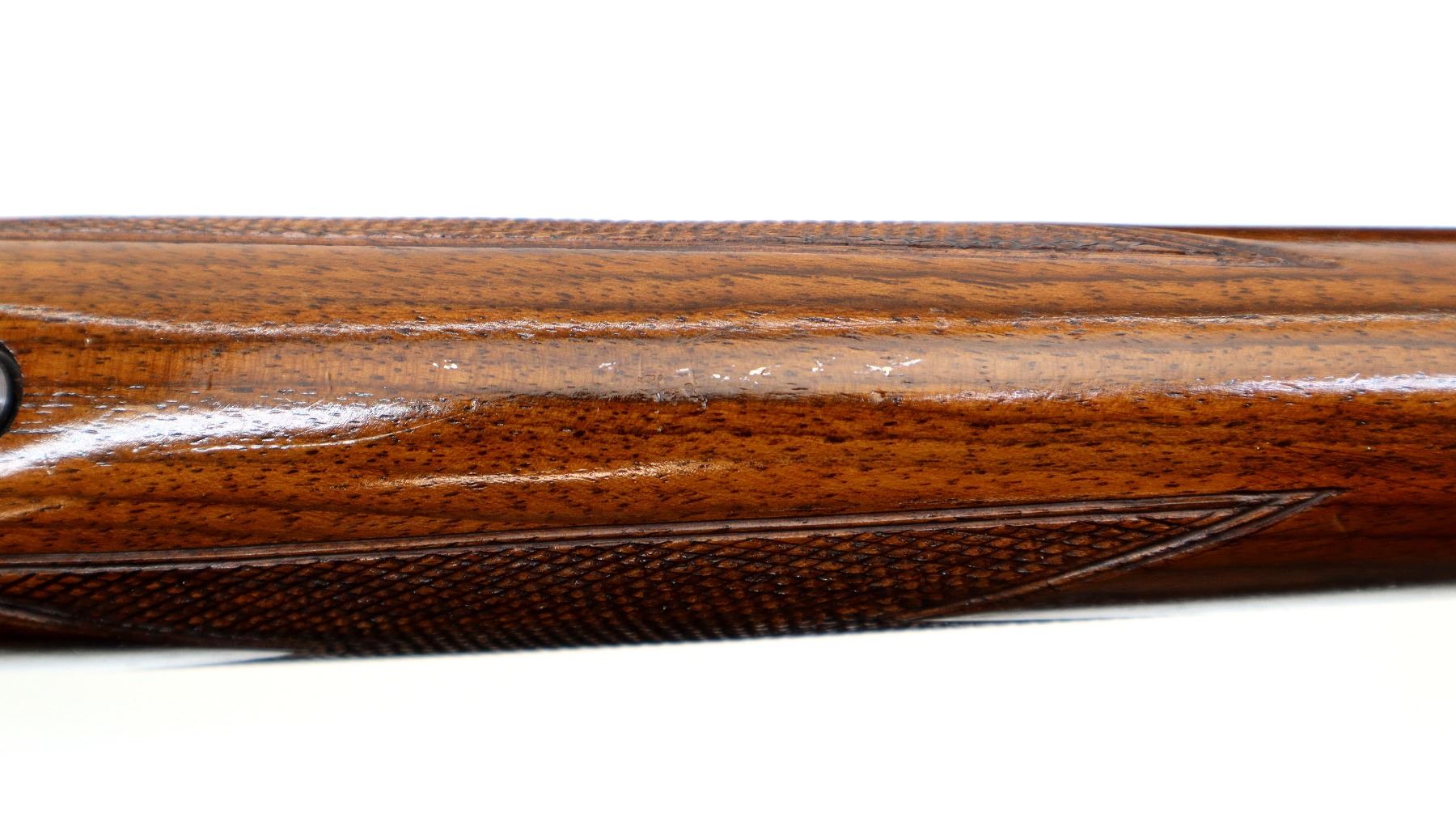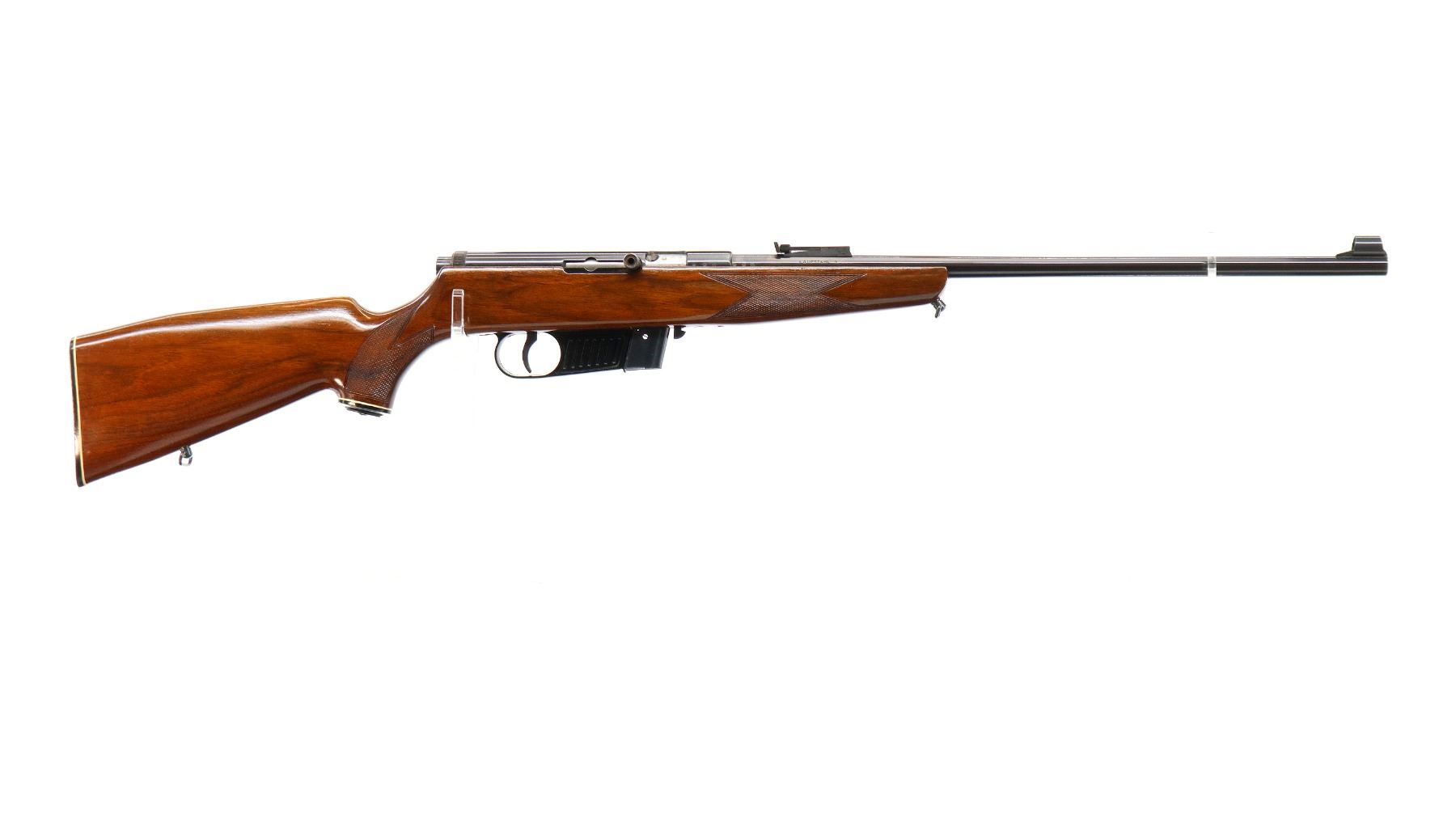 Main Description: Blade front sight with hood and ramp, adjustable u notched rear sight, blued finish, grooved receiver, note: bolt and safety do not move, appear to be old oil which has seized the parts cannot check bore requires cleaning or repair. One piece wood stock, checkered forearm, pistol grip and black polymer butt plate, European cheek rest, grip cap, sling swivels.