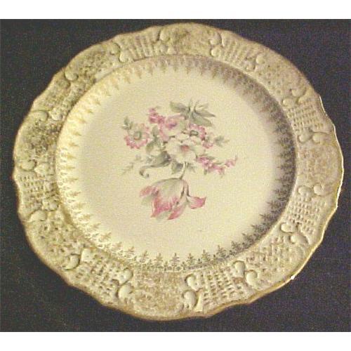 This VOGUE DINNERWARE PLATE, WASHINGTON COLONIAL PATTERN, 22K GOLD TRIM IS 10 INCH DIAMETER. IT HAS FULL GOLD TRIM, COMPLETELY AROUND THE BORDER, AS CAN BE SEEN IN THE PICTURE.