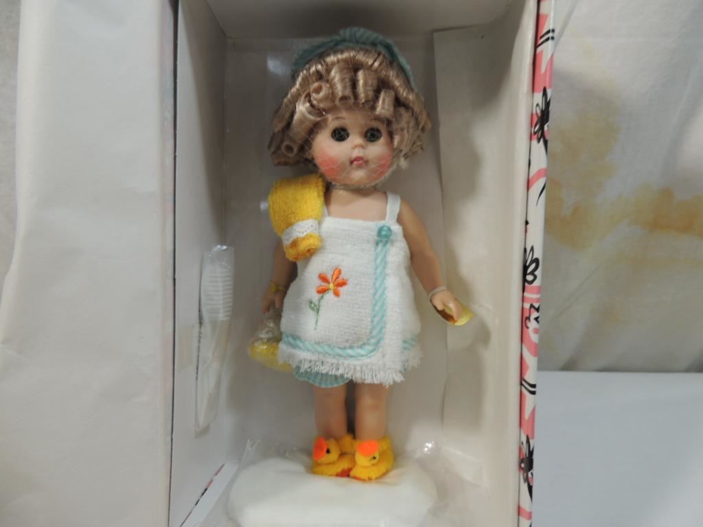 8" VINYL COLLECTIBLE DOLL, READY FOR BATH SHOWER, TOWEL AND DUCKY SLIPPERS BATHMAT ACCESSORIES COLLECTIBLE GINNY DOLL, GREAT CONDITION NEW IN BOX AS SHOWN SEE PHOTO FOR MORE DETAILS.