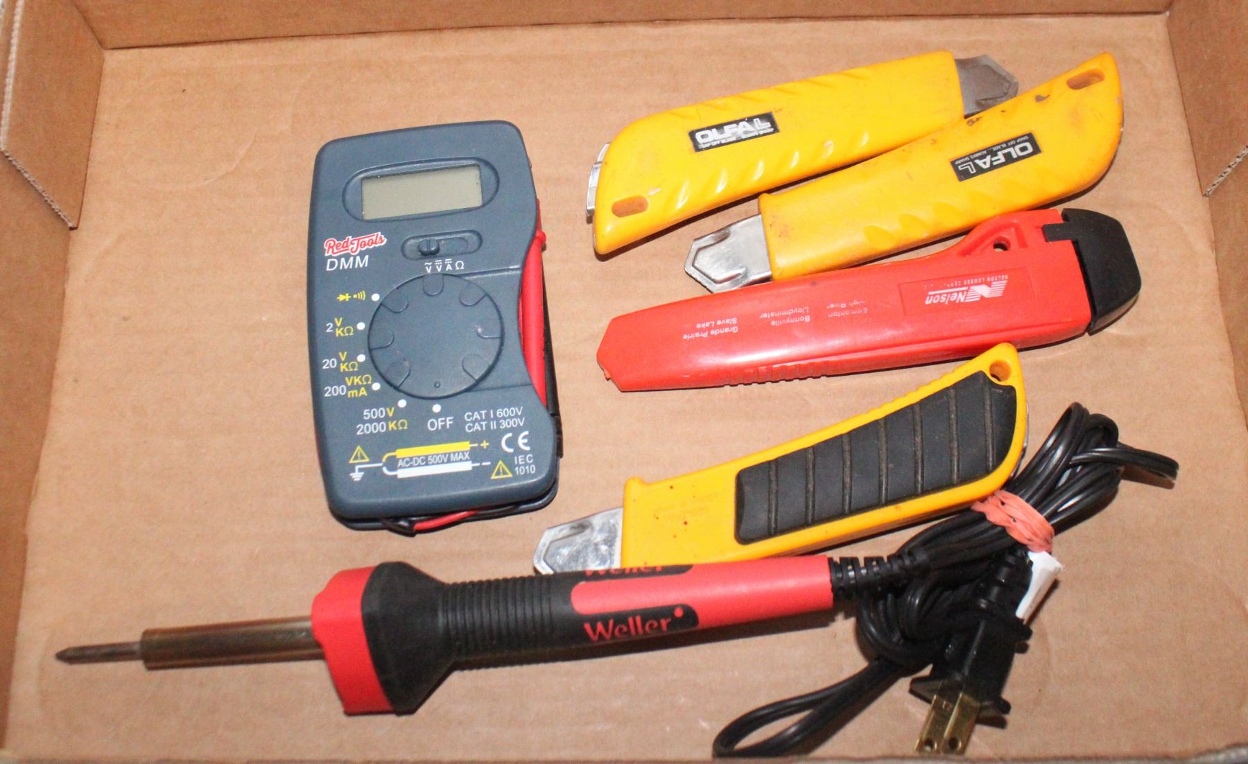 VOLT METER/SOLDERING IRON PLUS KNIVES